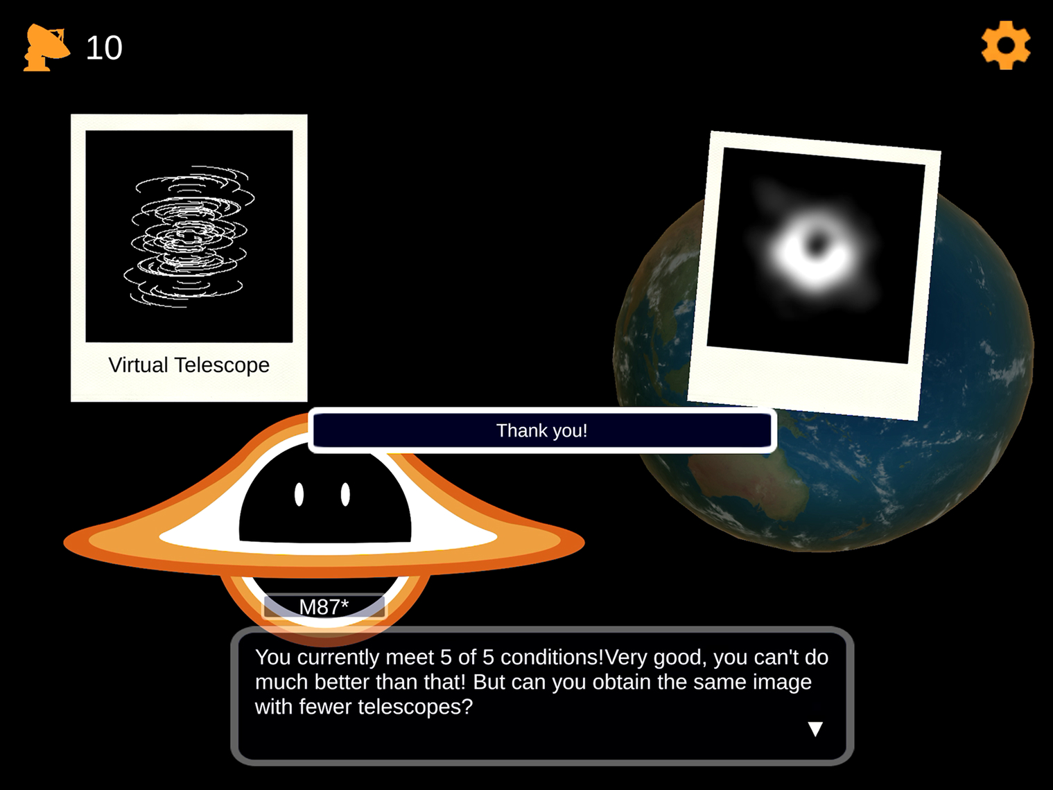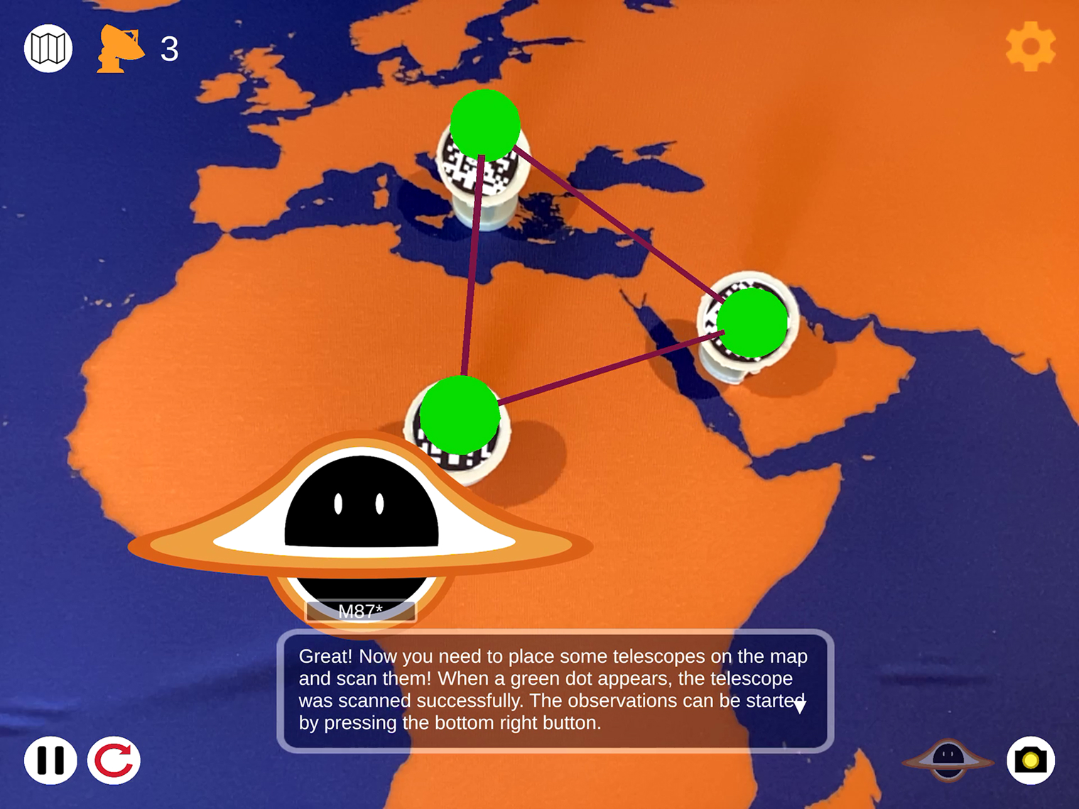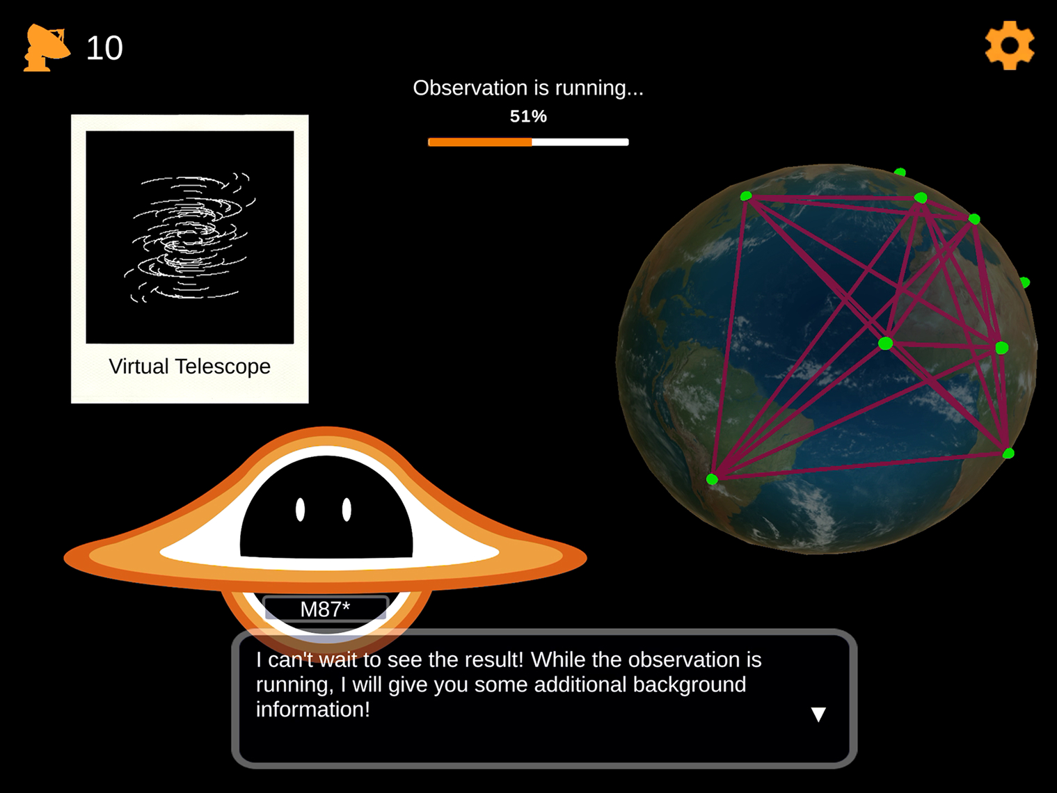 In Black Hole Cam, players can place radio telescopes digitally on a world map and simulate images of various objects in our universe. At the same time, players learn how such images are created.