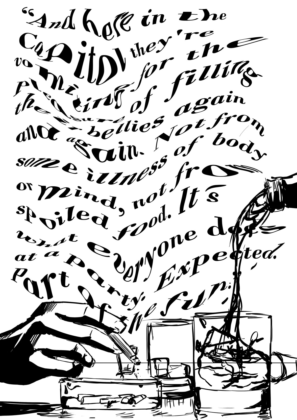 The ruling regime, the Capitol, likes to have parties where people eat a lot. If you are full, you vomit so that you can eat even more.