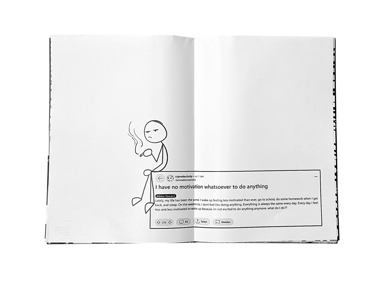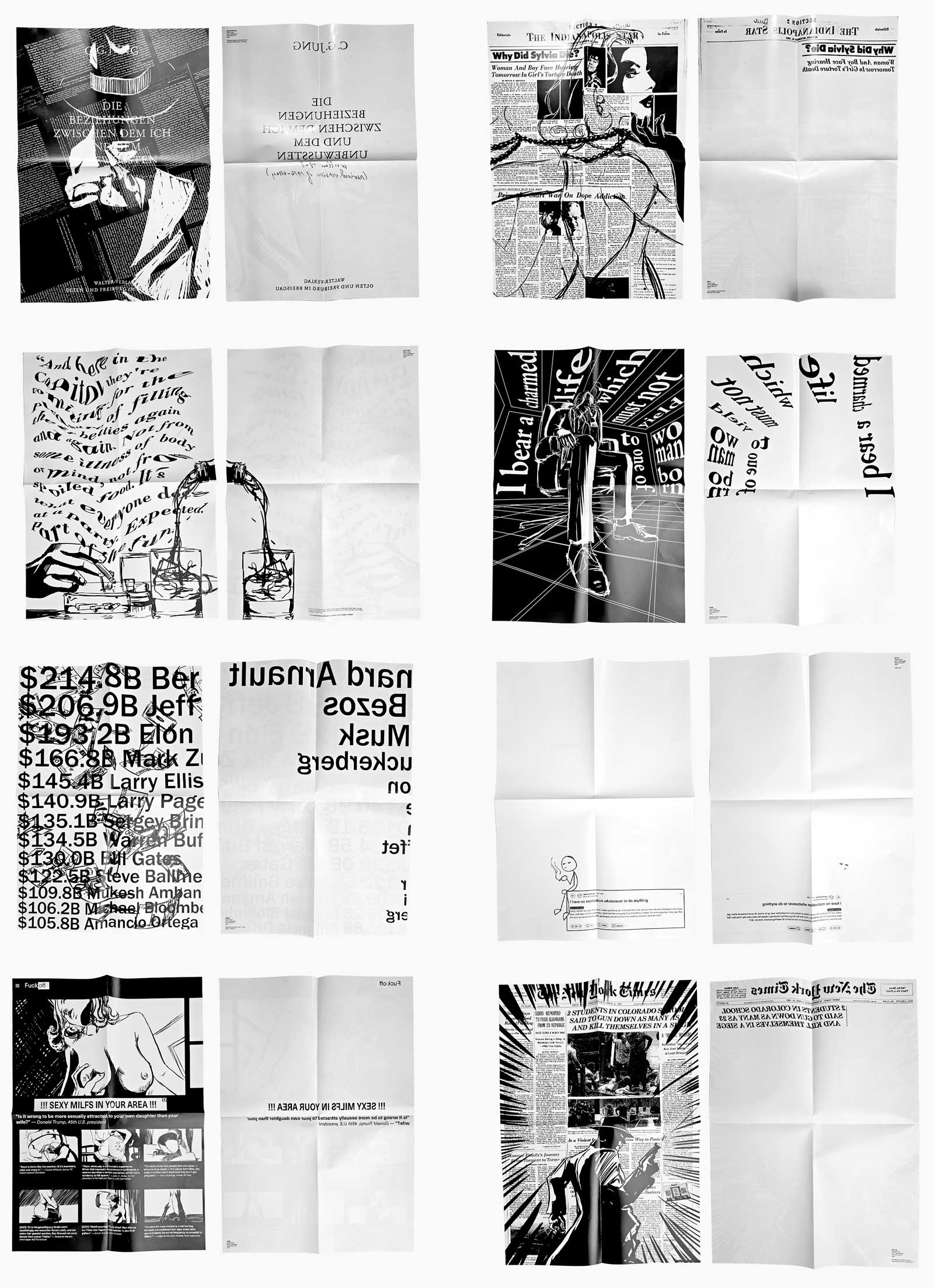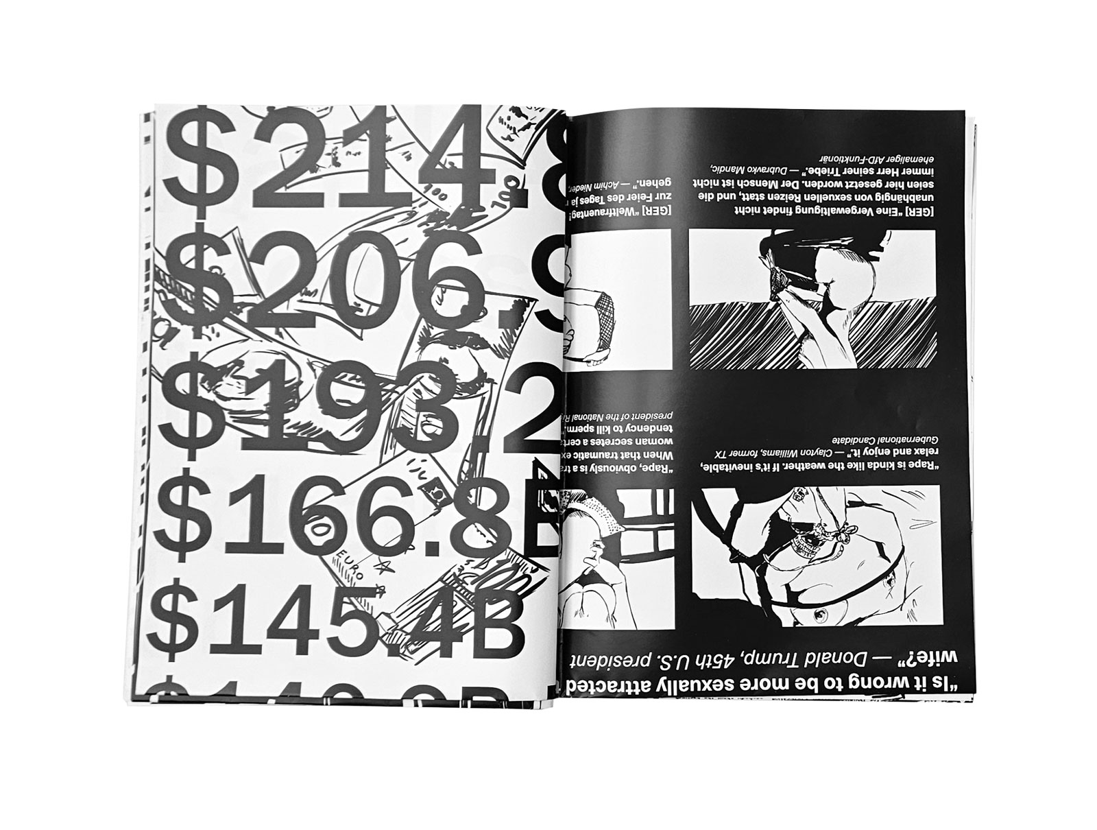 The result is a series of eight DIN A2 posters: one for each deadly sin and one introducing the concept of the shadow. The sketch-like illustrations, done in a comic noir style, are combined with text from various analog and digital media sources.